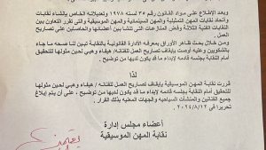 قرار إيقاف التصاريح من نقابة المهن الموسيقية