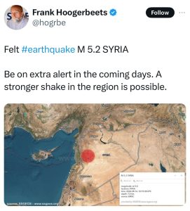 نشر العالم الهولندي فرانك هوغربيتس، المعروف بتوقعاته المثيرة للجدل، على حسابه في منصة “إكس” أمس الأربعاء، تحذيرًا بشأن الزلازل في المنطقة بعد الهزة الأرضية الأخيرة التي ضربت سوريا وامتدت إلى لبنان والأردن. وأشار إلى أن يومي 19 و28 أغسطس الجاري قد يشهدان زلزالًا كبيرًا، مما أعاد تسليط الضوء على خطر الزلازل في تركيا.