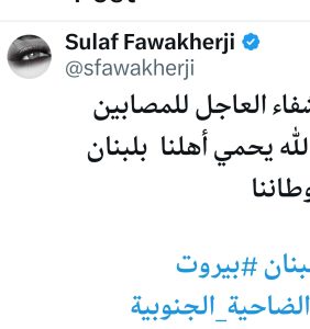 وقالت سلاف فواخرجي: “الشفاء العاجل للمصابين