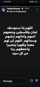 نشر الفنان المصري تامر حسني منشورًا أعلن فيه تضامنه مع ما يحدث في لبنان وفلسTين على حد سواءٍ، أمام ما يعيشانه من استهداف حقيقيّ ومباشرٍ من طرف العدوّ.