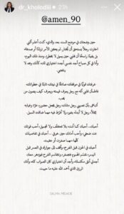 في لحظات الصمت التي تأتي بعد صدمة فظيعة، لا نرى إلا الصورة الهادئة… لكن خلفها قد تكون معارك نفسية لا يعرفها أحد. هكذا بدت كلمات دكتورة خلود الأخيرة، التي شاركتها عبر خاصية “الستوري”، وكأنها نافذة صغيرة فتحتها على مرحلة صعبة عاشتها مع زوجها أمين وأطفالهما.