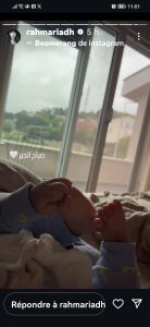 رحمة لم تظهر ابنتها بشكلٍ كامل، ما يعني أنها تخاف عليها كثيرًا بعد، ولم نرَ سوى قدميها وواجهة طبيعيةٍ جميلة يطل عليها منزل رحمة وزوجها الكساندر علوم.