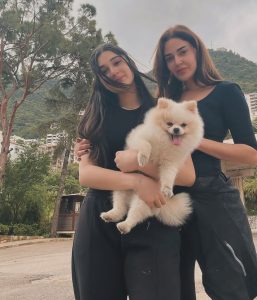 اللافت في الصورة أدناه ظهور كلب ابنة سيرين الذي يبدو أنه يرافقهما كثيرًا ويبدو مدللًا وودودًا.