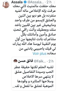 ردت أصالة على هذه الرسالة بكلمات مؤثرة أكدت فيها أن إخلاصها وحبها لزوجها كانا السبب في تحقيق أحلامها، قائلة: “معك حققت ما تمنيت لأني معك عرفت بأن الإخلاص ليس أغنية منفردة بل هو ديو بين اثنين… الله يبارك لي فيك يا حبيبي يا دنيي من سعادة وأمان… لولاك ما كملت ولولاك ما كنت.”