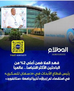 في استقصاءٍ خاصٍ، أُجريَ لجامعة ستانفورد، تبيّن أنَّ البروفيسور الباحث فهد ملا تصدر ضمن أعلى من الباحثين الأكثر اقتباسًا عالميًّا بنسبة 2%.