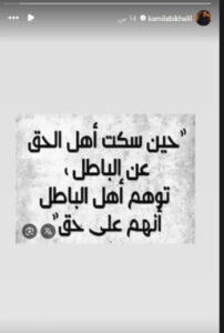 وكتب أبي خليل عبر خاصية “الستوري”: “حين سكت أهل الحق عن الباطل، توهّم أهل الباطل أنهم على حق”، وهي عبارة اعتبرها المتابعون موجّهة بشكل غير مباشر لماريتا بعد يومين فقط من حديثها العلني عن أسباب انفصالها.
