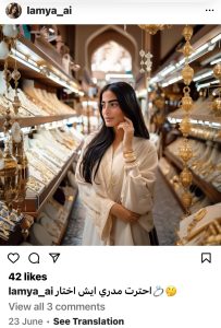 انتشر بين رواد مواقع التواصل الاجتماعي حساب رسمي للموديل السعودية، لمياء عبد الله، بتقنية الذكاء الاصطناعي، والتي تعتبر أول موديل سعودية يتم إطلاقها بالذكاء الاصطناعي.