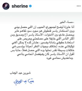 بهذه الجملة القصيرة أغلقت شيرين باب الشائعات، وأعلنت رسميًا أنها في طريقها للعودة إلى الساحة الفنية بعمل جديد يُرتقَب أن يشكّل بداية مرحلة مختلفة في مسيرتها.
