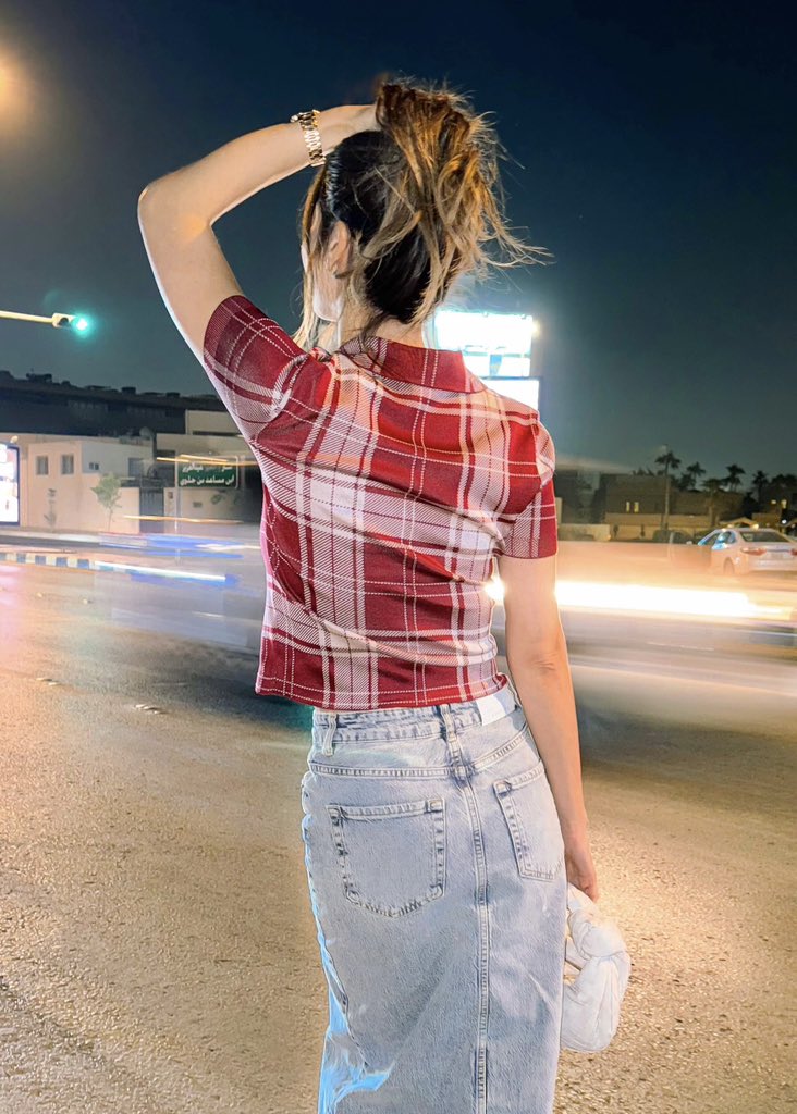 نانسي فاجأت جمهورها بإطلالة تجمع بين الكاجوال الكلاسيكي وموضة الكاروهات القديمة، إذ ارتدت قميصًا منقوشًا بنمط الكاروهات الأحمر مع تنورة جينز طويلة، متخليةً بذلك عن عادة الظهور بالفساتين الأنيقة التي اعتاد عليها محبوها في إطلالاتها.