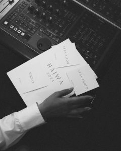 ونشرت نجوى صورةً التقطتها من الاستوديو، تشير إلى تسجيلها أول أغنيةٍ من الألبوم، ولم تُظهر سوى يدها تمسك بورقة أول أغنيةٍ في الألبوم، مرفقة عقبها صورةً أخرى قالت فيها: “قريبًا”