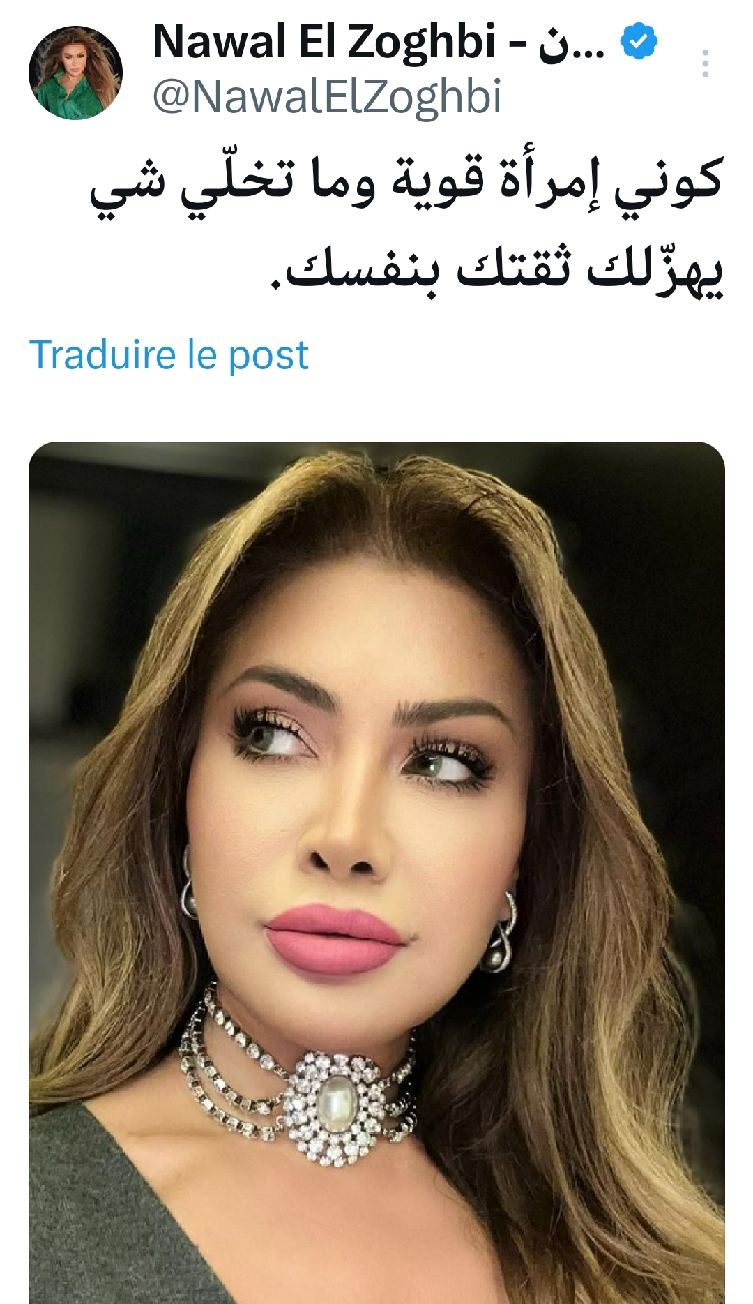 نشرت الفنانة نوال الزغبي منشورًا جميلاً على منصة X، جذب اهتمام الآلاف من متابعيها ومحبيها. في منشورها، دعت نوال الزغبي النساء جميعًا إلى أن يكونوا قويات، مؤكدة بقولها: “كوني إمرأة قوية وما تخلّي شي يهزّلك ثقتك بنفسك.”